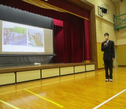 全校児童生徒の前で立っている姿がとても誇らしげで、嬉しそうな姿が印象的でした。
